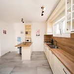 The Krnica accommodation offers self-catering amenities, such as an equipped kitchen, and an outdoor dining area for guests' convenience. The kitchen also offers an electric kettle, a refrigerator, and basic cooking facilities.